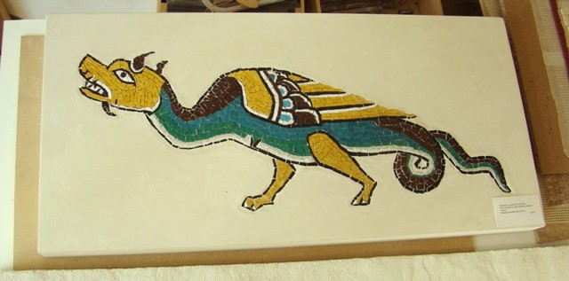 Dragon en Mosaïque_ Smalt vénitien & tesselles d'Or_ Incrustation dans une Pierre de Taille