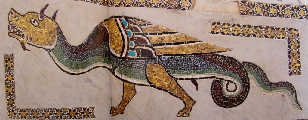 Dragon byzantin... en Smalt et Or 24 carats, incrusté dans une véritable pierre de région (Vendu_ sur commande uniquement).