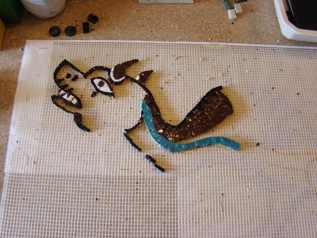 Dragon byzantin... en Smalt et Or 24 carats, incrusté dans une véritable pierre de région (Vendu_ sur commande uniquement).
