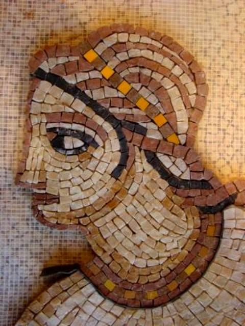On remarque particulièrement bien le détail des bijoux, réalisés à l'aide de tesselles d'or...